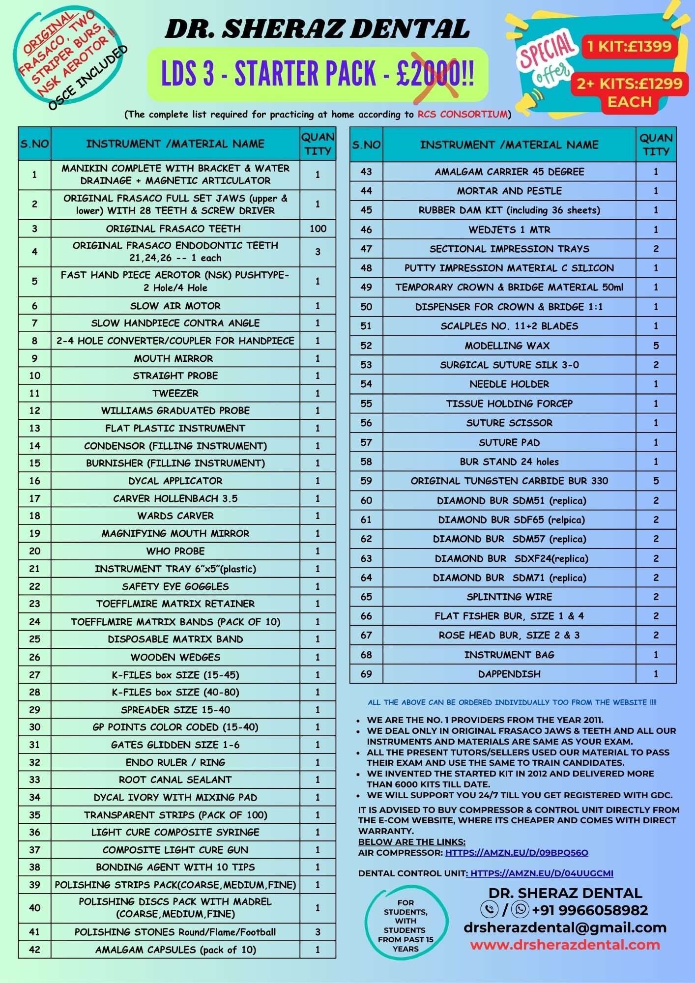 SUPPLIED MORE THAN 6000 KITS. OUR KIT INCLUDES ALMOST 30 INSTRUMENTS AND
